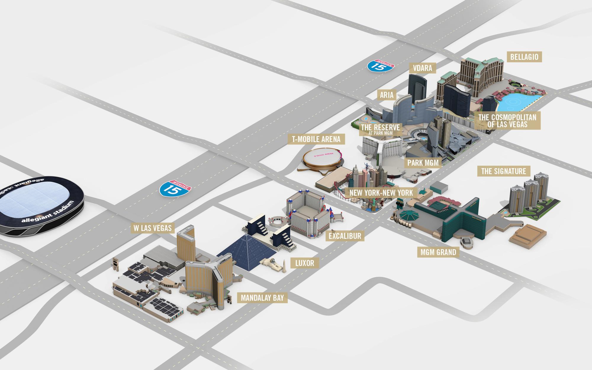 The Luxury Meeting District is comprised of Bellagio, ARIA, Vdara, The Cosmopolitan, Park MGM, The Reserve at Park MGM, T-Mobile Arena, The Chelsea and Dolby Live. The campus is a great option for groups looking for an elevated meeting experience. Made up of six resorts and three theater arenas, a variety of walking and tram options can seamlessly bring you from one side of the campus to another.
