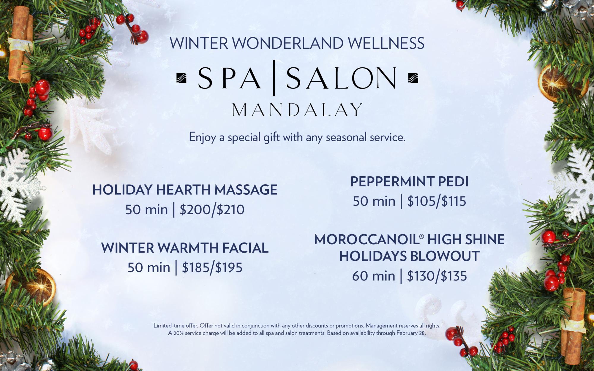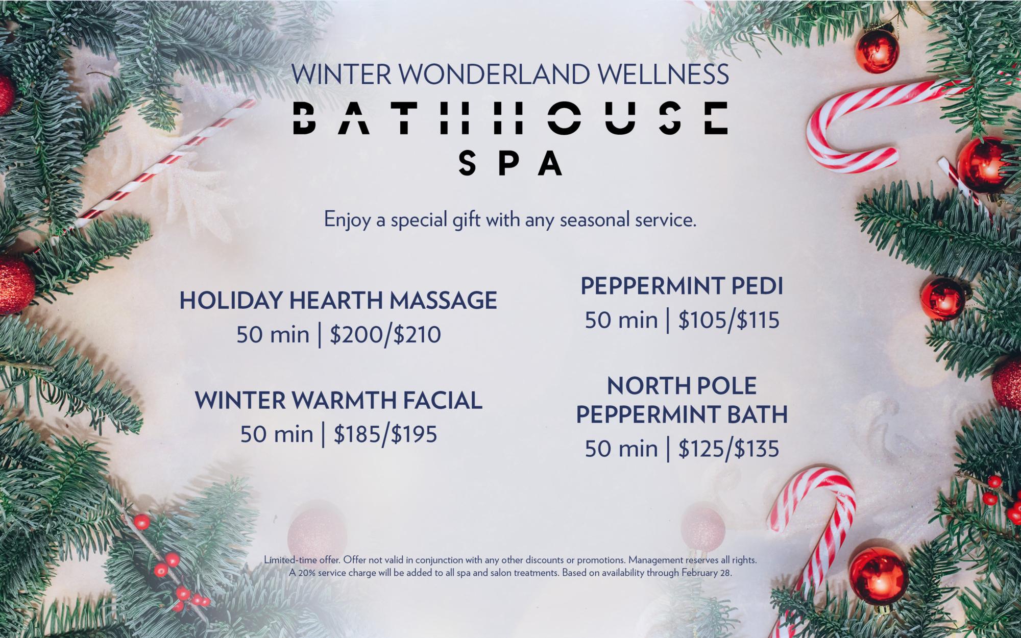 Step into the final day of 2025 feeling refreshed and celebrated. On December 31, indulge in a rejuvenating facial, body scrub, or massage—perfect for releasing the year’s stress and welcoming a clean slate. And if you’re heading out for the night, visit our salon to get NYE-ready with professional hair and makeup. Every spa reservation will receive a complimentary mineral soak to take home. Bathhouse and MB Spa guests will also receive a complimentary beverage.